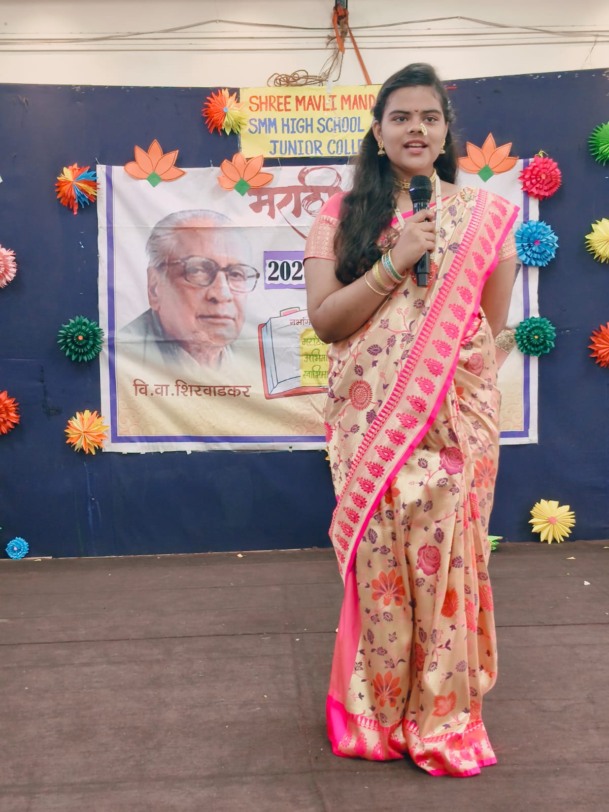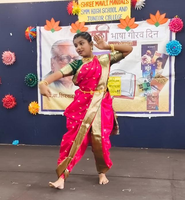 या वर्षी नभागण साहित्यिकांचे अंतर्गत ज्येष्ठ कवयित्री इंदिरा संत यांना समर्पित केला. यावेळी इयत्ता ६ वी ते ११वी तील विद्यार्थ्यांनी रंगबिरंगी कार्यक्रम सादर केले. यात महाराष्ट्राची महती सांगणारी गीते आणि माहिती सादर करण्यात आली. कवयित्री इंदिरा संत यांचा कविता सादर करण्यात आल्या. बाजीप्रभूंचा पोवाडा, मराठी भाषेचे महत्त्व सांगणारे नाटक व तसेच देवीचा गोंधळ, गणपती नृत्य इत्यादी सांस्कृतिक कार्यक्रम सादर करण्यात आले. सर्व मुलांनी कार्यक्रमाचा आस्वाद घेतला. या कार्यक्रमात मुख्य अतिथी म्हणून श्री मावळी मंडळ हायस्कूल आणि ज्युनिअर कॉलेजचे मुख्याध्यापक श्री.रोशन वाघ सर यांनी मुलांना मार्गदर्शन केले आणि राजभाषेच्या शुभेच्छा दिल्या. अशा प्रकारे कार्यक्रमाची सांगता झाली.