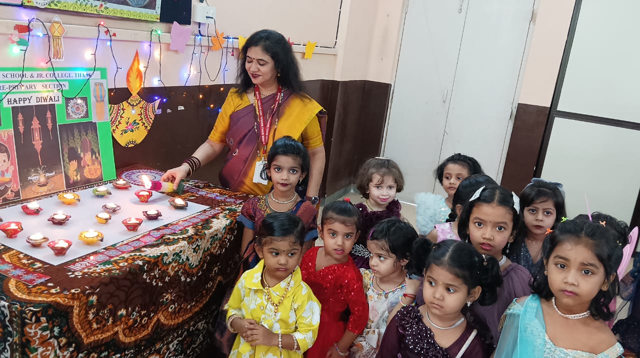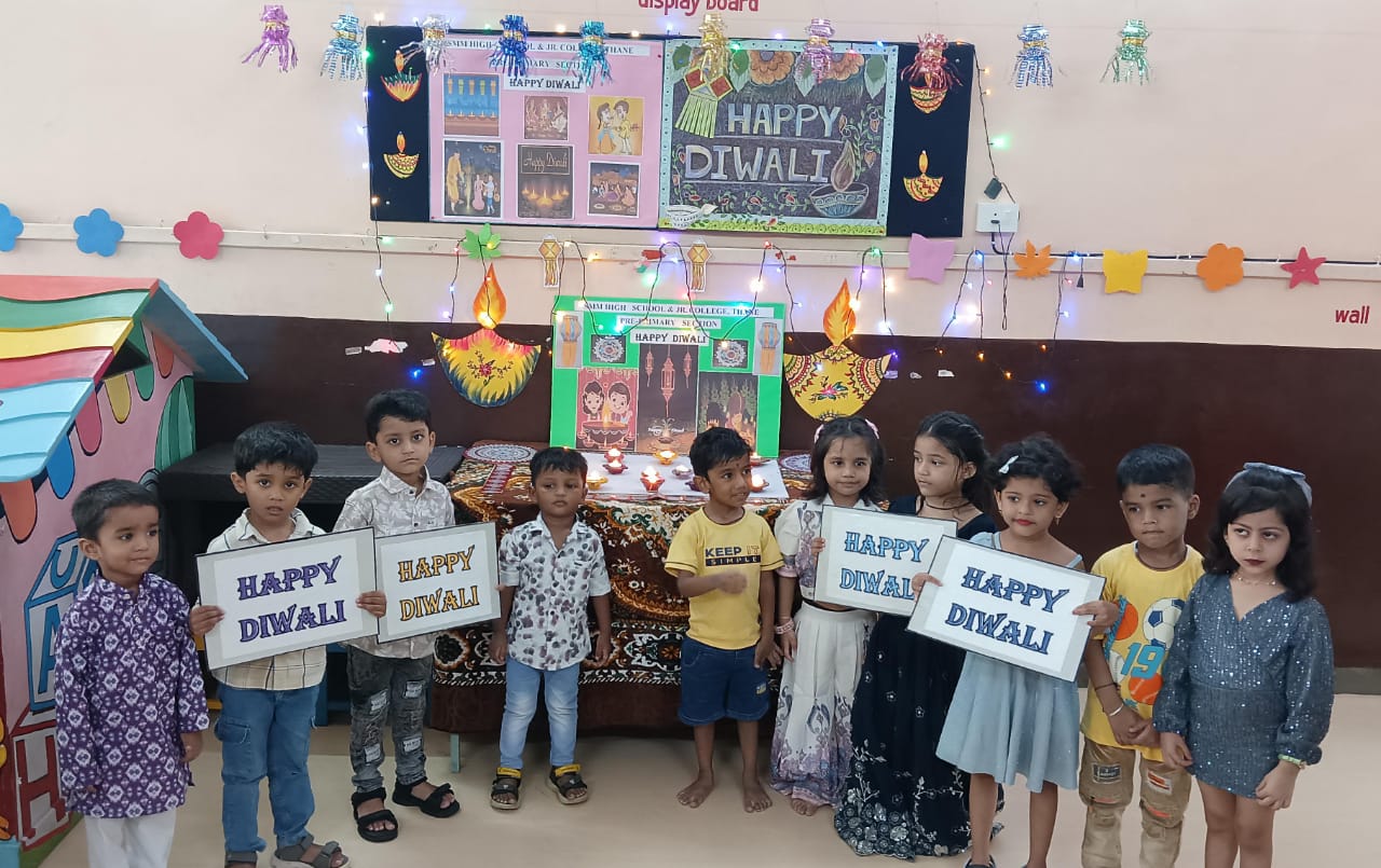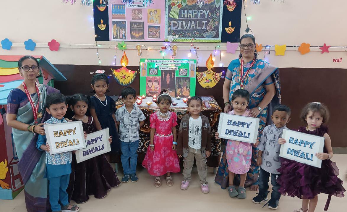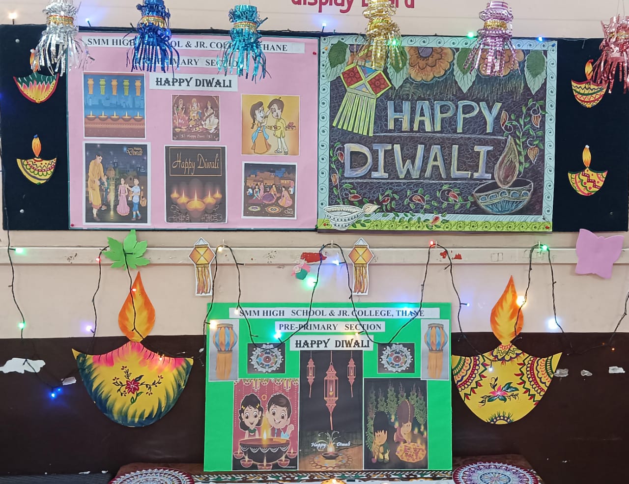 Diwali is the ‘Festival of Lights and togetherness’. People clean & decorate their homes with diyas, lanterns and beautiful rangolis and feast on homemade snacks like chiwda, chakli, sweets etc. Diwali is one of the most awaited festivals in India which is celebrated with great joy and love with friends and family. The students of the Pre-primary section of SMM High School & JR. College wore party wear dress for Diwali party, after which snacks and gifts were handed over to them. They danced and enjoyed the Diwali party.