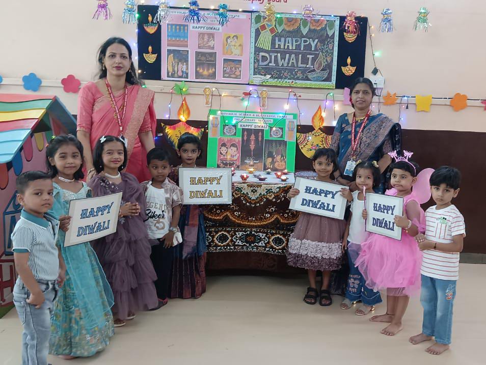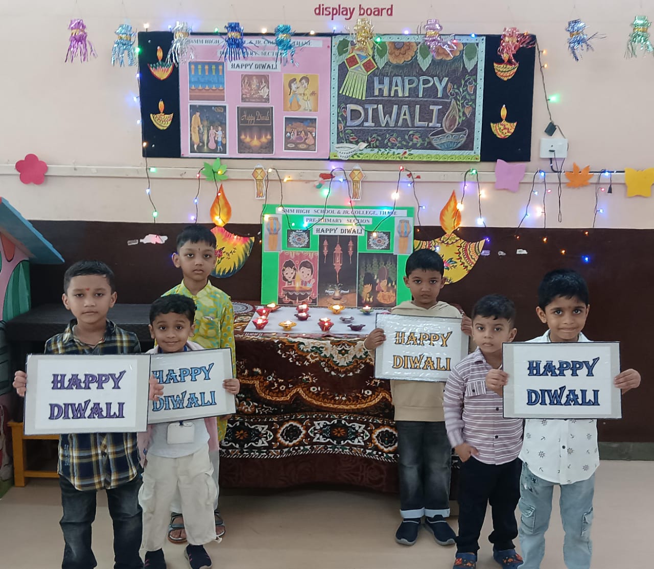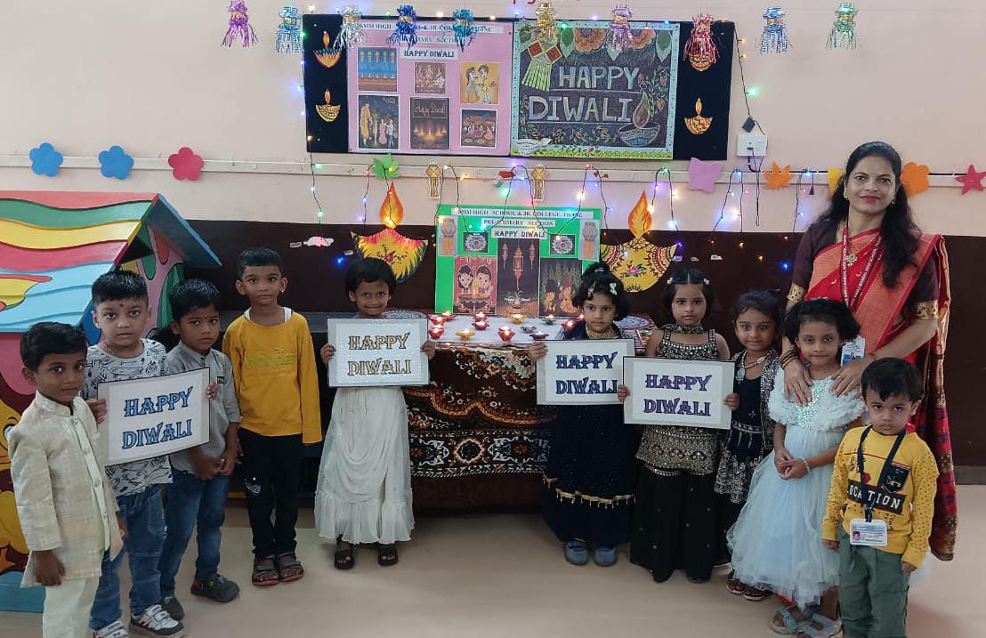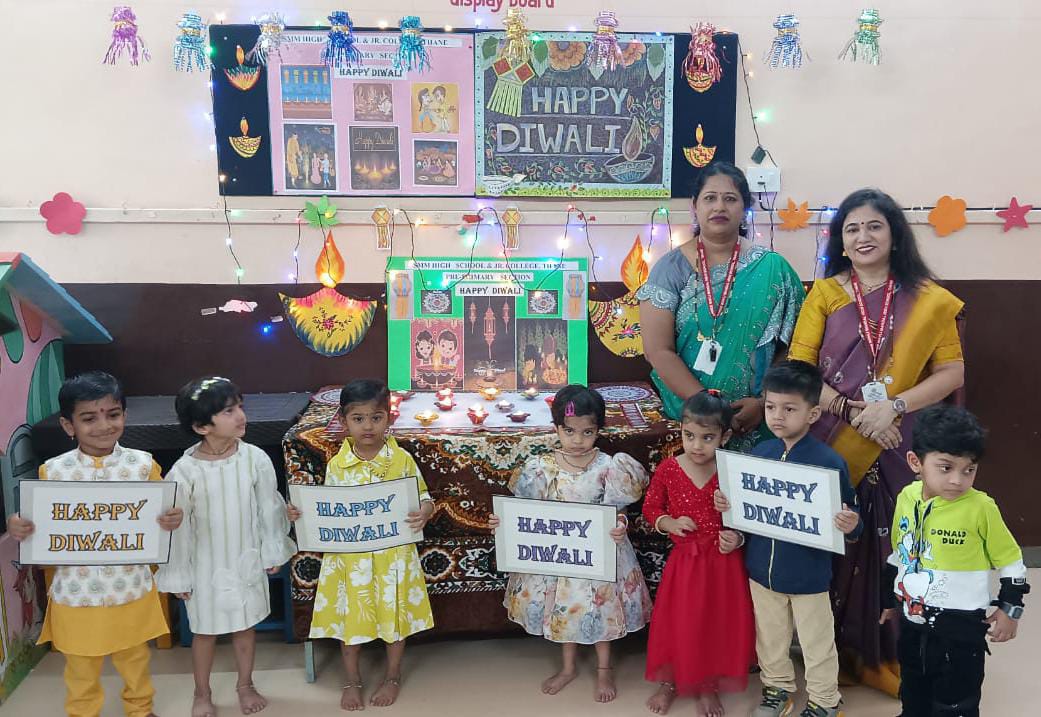 Diwali is the ‘Festival of Lights and togetherness’. People clean & decorate their homes with diyas, lanterns and beautiful rangolis and feast on homemade snacks like chiwda, chakli, sweets etc. Diwali is one of the most awaited festivals in India which is celebrated with great joy and love with friends and family. The students of the Pre-primary section of SMM High School & JR. College wore party wear dress for Diwali party, after which snacks and gifts were handed over to them. They danced and enjoyed the Diwali party.